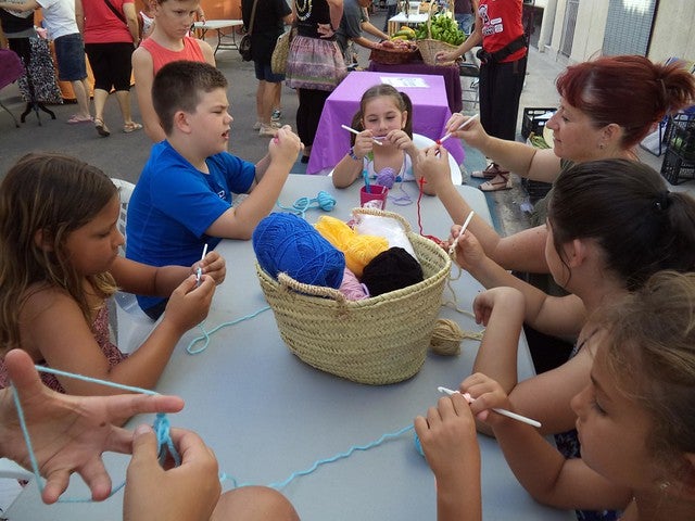 Els més menuts van aprendre a fer ganxet a través d’un taller organitzat per una de les parades. Després, la companyia de teatre El ball de sant Vito va representar l’obra de titelles “La terra dels babaus”, una barreja de música i humor que va agradar grans i menuts.