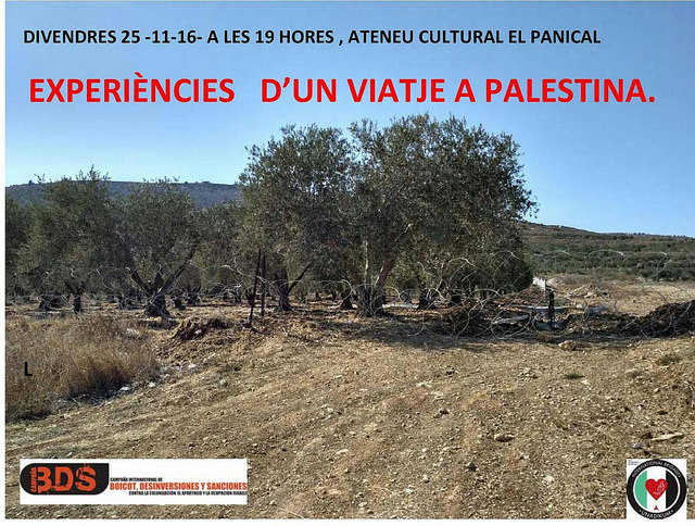 A les 19h. tindrem la sort de comptar en la presència de Ximo Nebot que ens comptarà les seues vivències d’un viatge a Palestina.