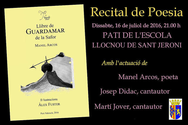 Acte que servirà per a presentar el ‘Llibre de Guardamar de la Safor’, obra que conté els darrers poemes meus, acompanyats d’il·lustracions de l’artista d’Oliva, Àlex Fuster.
