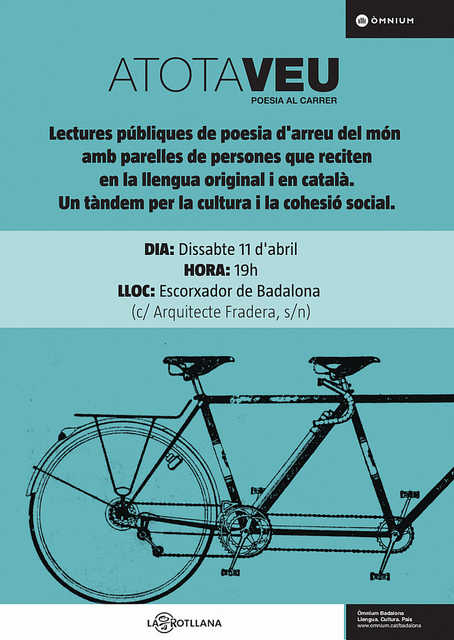 El proper dissabte 11 d’abril a les 19.00h a l’escorxador de Badalona tindrà lloc el recital poètic “A tota veu” que ja fa anys que es va iniciar a Badalona i s’ha desenvolupat en diferents ciutats del país.