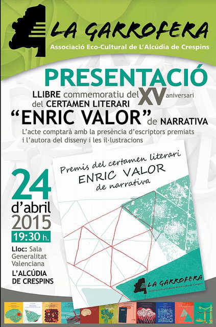 El termini de presentació de treballs per a l’edició de 2015 al quinzè certamen de narrativa “ENRIC VALOR” i al certamen de poesia “ANTONI FERRER”, també organitzat per La Garrofera, encara resten obertes fins el dia trenta d’abril, i convidem a tots aquells interessats a participar-hi i, com no, també a assistir a la presentació d’aquesta publicació.