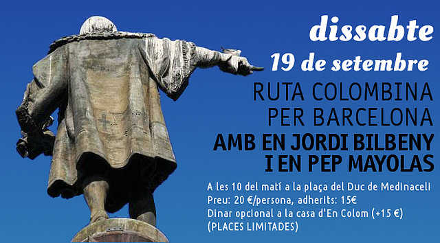 El dissabte 19 de setembre, ruta guiada d’En Colom per la Ciutat de Barcelona amb En Jordi Bilbeny i En Pep Mayolas.