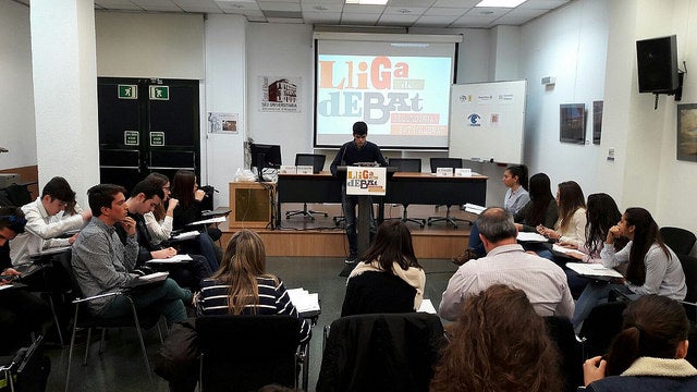 La Seu Universitària d’Alacant ha acollit la segona jornada de la Lliga de Debat, organitzada per Escola Valenciana, la Universitat d’Alacant –UA– i la Xarxa Vives, corresponent a la demarcació de la UA. Els debats d’avui han tingut lloc en dos sales i s’han desenvolupat entre 45 alumnes de nou equips.