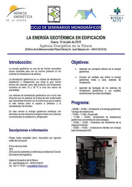 En aquest seminari abordarem les instal·lacions de climatització geotèrmica als edificis. Els objectius del seminari són: