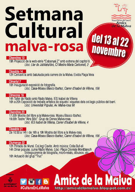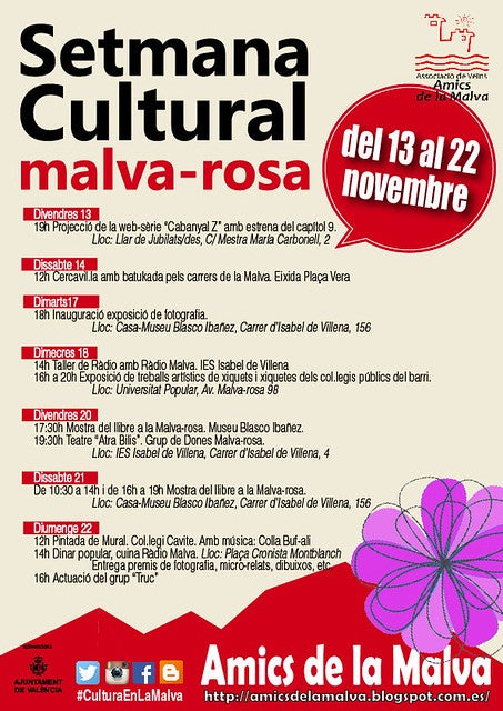 Calendari d’activitats de la setmana cultural Malva-rosa 13 al 22 de novembre