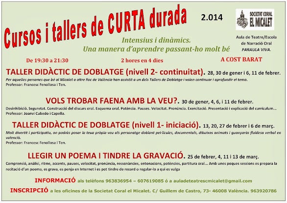 Aula de Teatre/Escola de Narració Oral – PARAULA VIVA – Societat Coral el Micalet.