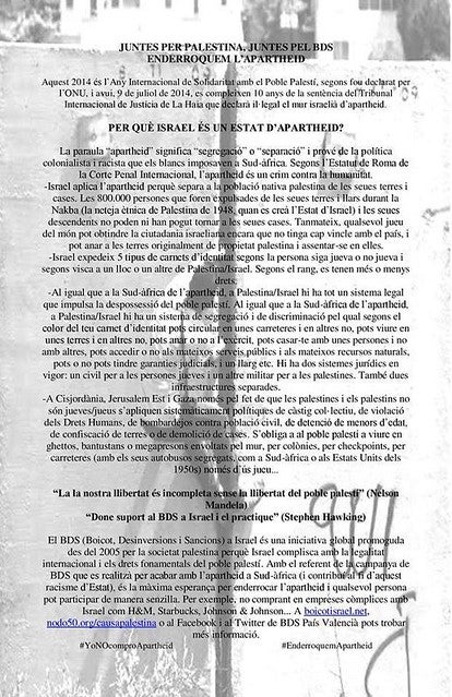 Juntes per Palestina, Juntes pel BDS, Enderroquem l’Apartheid! Compartit amb els grups País Valencià amb Palestina i BOTA’LS el passat dia 10 a València.