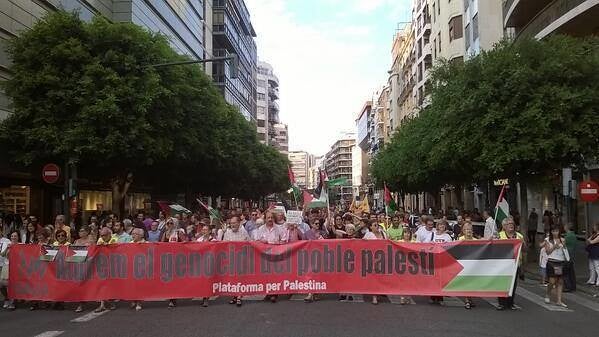 Manifestació de suport i solidaritat amb el Poble Palestí pel centre de la ciutat de València.