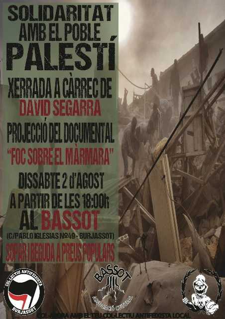 Demà dissabte 2 d’agost a partir de les 18h al local de l’AssociacióCultural Bassot (C/Pablo Iglesias,49 de Burjassot) hem preparat un acte de suport al poble palestí.