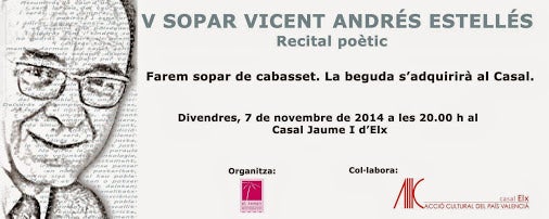 Arriba el V Sopar Vicent Andrés Estellés! Gaudiu dels nostres poetes i especialment de l’homenatge a Estel Crevillent