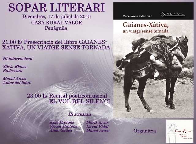 I a les 23.00 h, després de fer un sopar de germanor, començarà al mateix lloc el recital poeticomusical El vol del silenci.