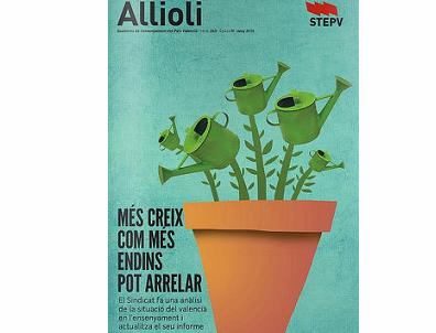 STEPV ha presentat aquest matí en roda de premsa el nou format de l’Allioli. Arran del XII Congrés, el Sindicat ha decidit renovar la seua revista per orientar-la cap a un espai de reflexió, de debat i de propostes, en el marc de la comunicació sindical. Cada Allioli tractarà un bloc temàtic monogràfic, que serà el nucli de la revista, i tindrà, a més, una secció amb un resum de l’actualitat sindical i una sèrie de seccions fixes d’opinió i ressenyes de llibres i pel·lícules.