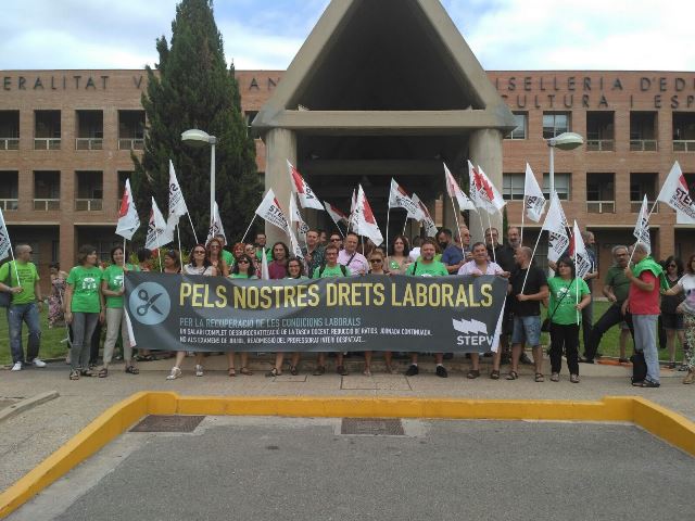 STEPV ha convocat una concentració aquest matí a la Conselleria d’Educació per a exigir la negociació de millores en les condicions laborals del professorat que, en lloc de millorar, han empitjorat en aquest final de curs.