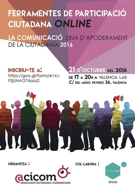 ACICOM, amb la col·laboració de «València LAB» i la Generalitat Valenciana organitza el Taller de ferramentes de participació ciutadana, el dia 21 d’octubre, de 17 a 20h., a les instal·lacions de València LAB.
