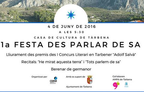 Vos convidem a la I Festa des Parlar de Sa, que tindrà lloc el dissabte 4 de juny a la Casa de Cultura de Tàrbena.
