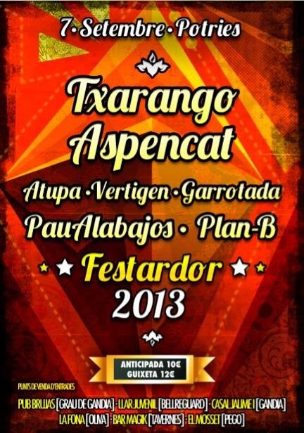 Encapçala aquesta edició el grup Txarango, que van fer el seu primer concert al País Valencià al Festardor del 2012. El grup destaca per la qualitat de les seves lletres que s’endinsen en un imaginari vinculat al món del circ i clown.