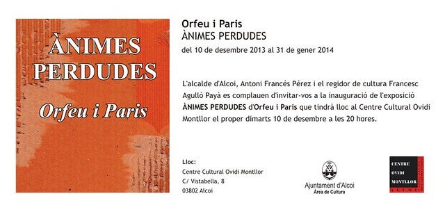 La primera de les mostres s’inaugura aquesta mateixa vesprada al Centre Ovidi Montllor; es tracta de l’exposició ‘Ànimes perdudes’, que els germans Orfeu i Paris Soler volen dedicar a la memòria del seu pare Alejandro Soler. Ambdós artistes han acompanyat al regidor de Cultura en la presentació del cicle, i han avançat que “es tracta d’una mostra intimista, que parla de les persones que ens han deixat recentment i dels sentiments amb què hem conviscut en els darrers temps”. L’exposició s’inaugura a les 20 hores i podrà visitar-se fins el 31 de gener.