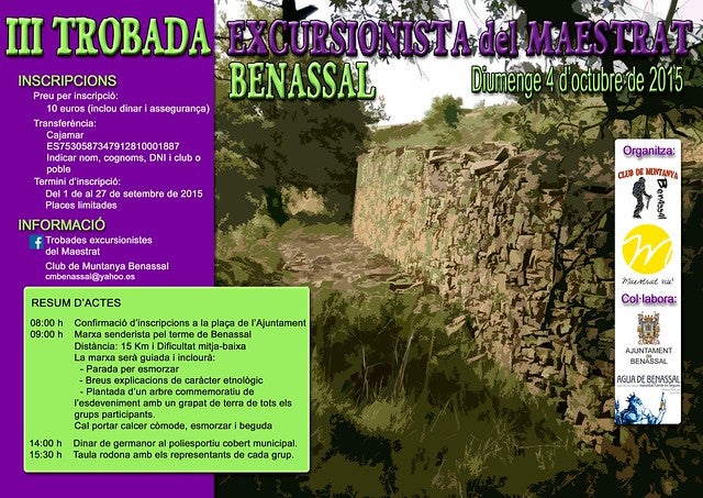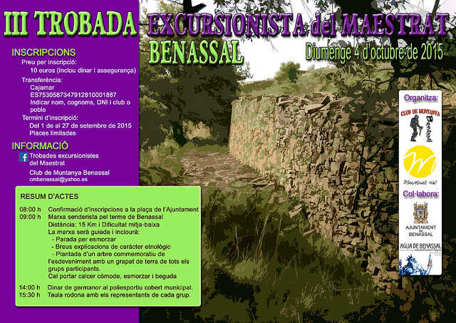 El proper 4 d’octubre es celebra la III Trobada Excursionista del Maestrat a Benassal i l’encarregat d’ organitzar-la és el Club de Muntanya de la localitat. Les trobades excursionistes les coordina el col.lectiu Maestrat Viu.