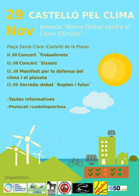 El 29 de Novembre vos esperem a la MARXA MUNDIAL PEL CLIMA a Castelló. Serà a les 11h a la plaça de Santa Clara de Castelló Vos esperem a tots i totes a la lluita contra el Canvi climàtic.