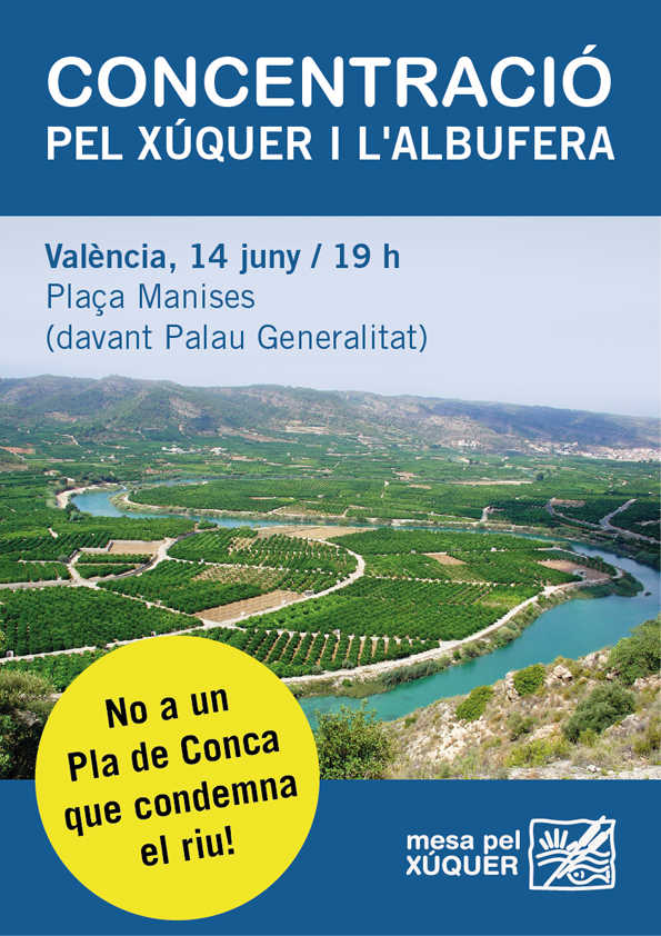 Però l’agressió més sagnant és que el nou Pla desposseeix el Xúquer de la seua condició de riu, per atorgar-li una altra, la de conducció d’aigua i, en la pitjor de les visualitzacions, en una escorrentia urbana i agrícola, que enverinarà els nostres pous i ullals i que, possiblement, ni tan sols arribarà a desembocar a la mar. I no ens valen les alternatives de demanar als llauradors part de l’aigua concedida per al reg ni les promeses per a finançar depuradores, perquè volem beure aigua bona del Xúquer, el nostre riu, aquell que dóna el nom a la comarca. Entre altres motius, perquè la ciutat de València i la de Sagunt sí que consumeixen aigua del Xúquer, València en un 80% del seu consum total, i perquè el llac de l’Albufera subsisteix gràcies a una aportació d’aigües nostres, en quantitat i en qualitat.