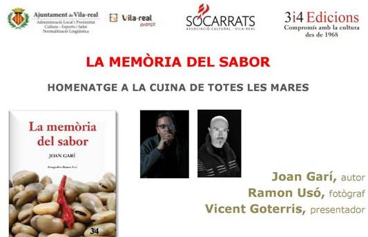 Presentació de “la Memòria del sabor” per Joan Garí, 19.00, Restaurant Entrelínias, dins de l’estadi de futbol “el Madrigal” (entrada front la plaça del llaurador)