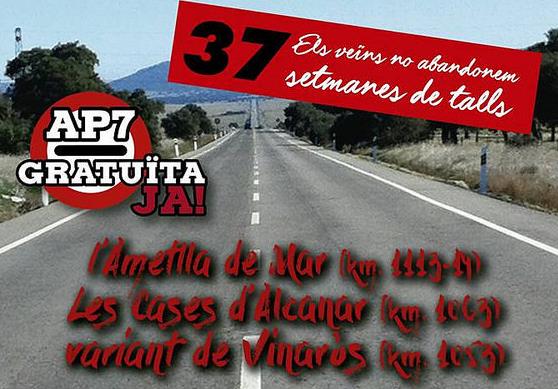 Novament veïns de la comarca quedem convocats per continuar en la reclamació d’una AP-7 lliure de peatge, que no es vol pagar per buscar la seguretat d’una via amb dos carrils per sentit i així mateix minvar la gran densitat de tràfic que ha de suportar la N-340 i que comporta un reguitzell constant d’accidents, morts, ferits …