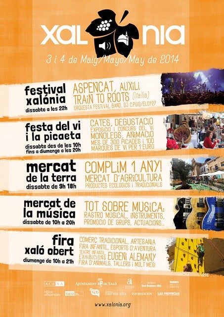 Tot és a punt perquè Xaló acullga la tercera edició de Xalónia. Es tracta de 48 hores de programació continuada que representen un gran expositor del que definix la localitat a nivell turístic, gastronòmic, comercial, cultural i històric. Des de l’organització s’ha destacat que Xalónia intenta aquest any 2014 centrar-se més que mai en la mediterraneïtat com a valor local i comarcal. En aquesta línia camina el lema de Xalónia que coincidix amb el lema turístic de Xaló 2014: essència mediterrània. Gastronomia, enoturisme, ecologia, concerts, cultura, comerç, artesania, esport i activitats infantils completen una oferta de cap de setmana per a tots els públics. Les novetats d’aquest any 2014 són la inauguració del Mercat de la Música i la gratuïtat de tota la programació. Xalónia manté també el seus pilars fonamentals: la festa del vi i la picaeta, el festival de música, la fira del comerç i l’artesania i el mercat de la terra. En definitiva, un psunami d’activitats adreçades a tots aquells que estimen els elements més tradicionals de Xaló i dels pobles valencians. Un cap de setmana complet que clourà diumenge a les 19.00hh amb l’actuació d’Eugeni Alemany