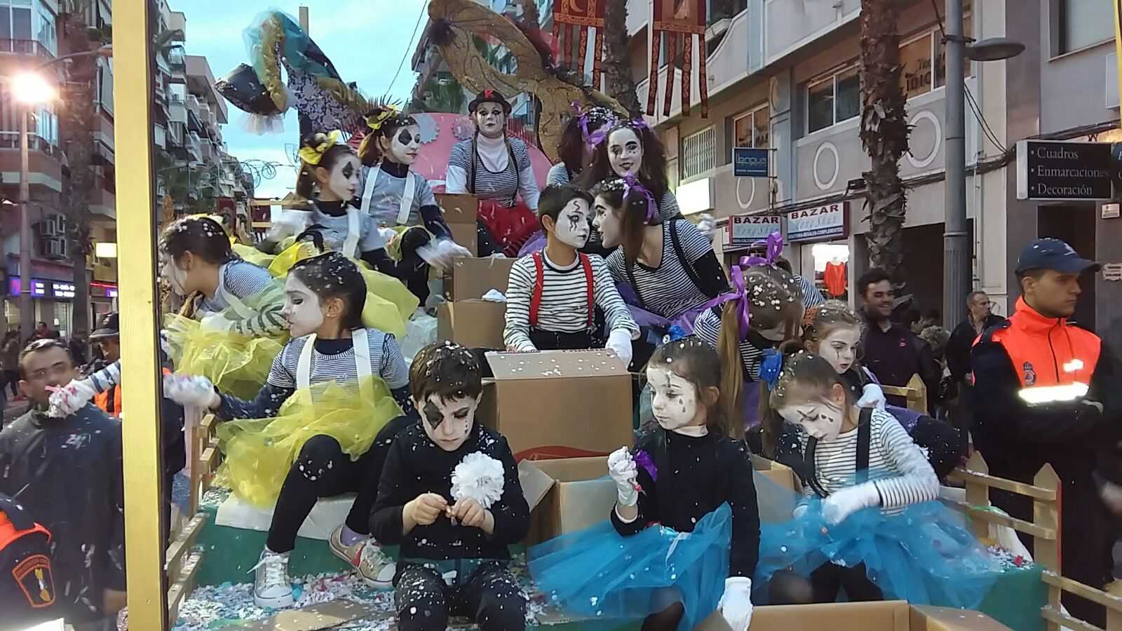 Disfressades de manyaga anaven la Reina de les Festes, Patricia Ferri, i les seues Dames d’Honor, Elena Gomis, Judith Ferrando, Laura Ferrando i Marina Lozano i la Reina de la Primavera, Jimena Monllor i les seues Dames d’Honor Paloma Pastor, Ainhoa Miró, Carmen Ibáñez i María Punzano. La seua carrossa va tancar aquesta desfilada, en el qual no va faltar el llançament de confeti i de caramels.