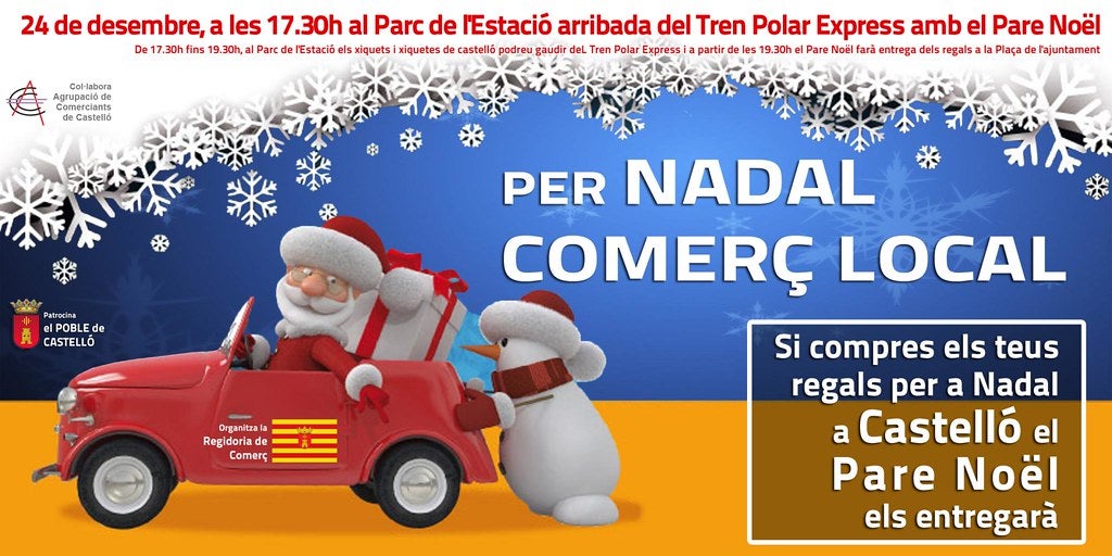 Si compres els teus regals a Castelló per a Nadal el Pare Noël els entregarà .