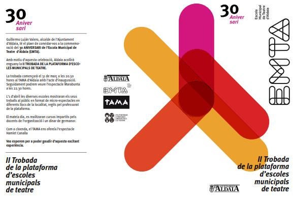 Programació de les activitats que s’han previst per a commemorar el 30 aniversari de l’Escola Municipal de Teatre d’Aldaia (EMTA).