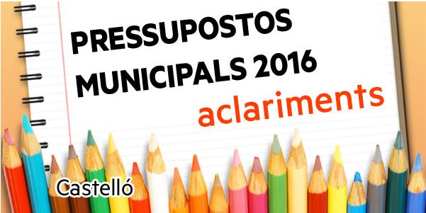 Finalment només ens queda convidar a tothom que vulga saber quelcom sobre els pressupostos de Castelló que faça servir aquells mitjans de què disposa el nostre ajuntament per a fer pública tota la informació que necessiten els nostres veïns, perquè nosaltres sí que creiem en la transparència com a fonament innegociable de la nostra acció de govern.