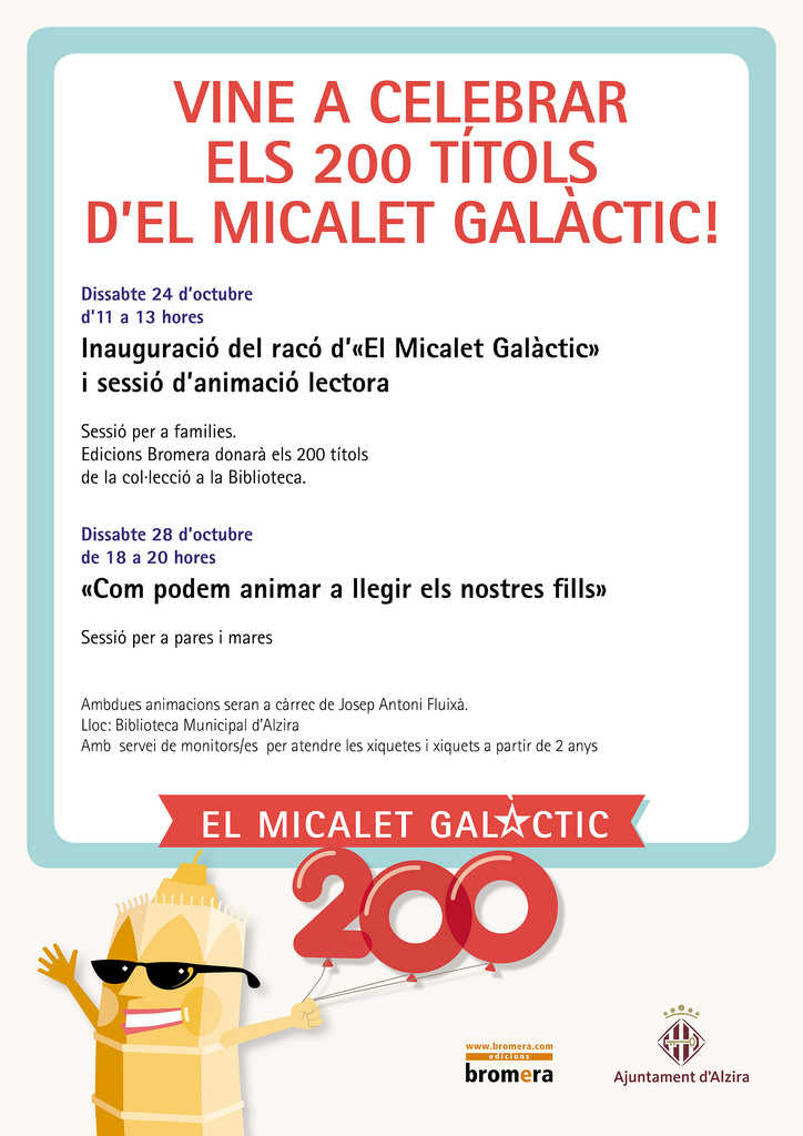 Abans de la sessió d’Animació Lectora Fluixà inaugurarà el racó d’El Micalet Galàctic amb la donació, per part d’Edicions Bromera, dels 200 títols d’esta col•lecció.