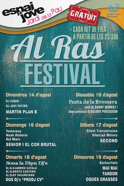 ‘Al Ras’ Festival posa fi a la seua programació de Fira 2015 el pròxim dimecres 19 d’agost amb les actuacions de la banda local “Barbaritats” i els grups convidats “Tardor” i “Oques Grasses”. Degut a un canvi d’última hora, “Mai Mai” actuarà també en aquesta última entrega del festival.
