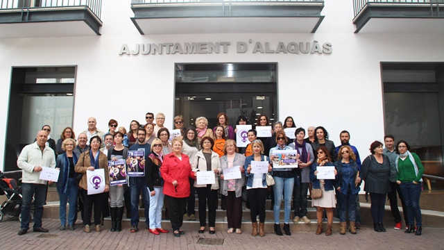 La realització d’una fotografia conjunta a la porta de l’Ajuntament d’Alaquàs ha estat l’acció central promoguda per adherir-se a la Marxa del 7 de novembre