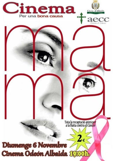 Projecció de la pel·lícula Mama per a recaptar fons per al càncer de mama. Dia: Diumenge 6 de novembre Hora: 19.00h Preu: 2 euros Lloc: Cinema Odeón Albaida