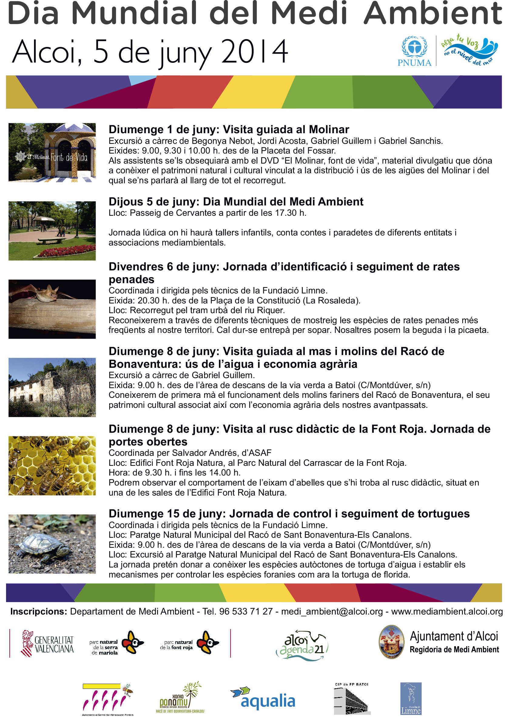 El programa s’inicia diumenge 1 de juny amb les visites guiades al Molinar, que acompanyen a l’edició d’una unitat didàctica sobre aquest brollador, coincidint amb el centenari de la construcció de la cúpula modernista. Hi ha programades tres visites (a les 9, 9.30 i 10 hores) que estaran guiades pels propis autors de la unitat didàctica: Jordi Acosta, Gabriel Guillem, Begonya Nebot i Gabriel Sanchis, i des del Departament de Medi Ambient s’indica que encara queden algunes places lliures per assistir, sobretot a la primera d’elles, per tant es poden formalitzar encara inscripcions al telèfon 96 553 71 27 i al correu medi_ambient@alcoi.org
