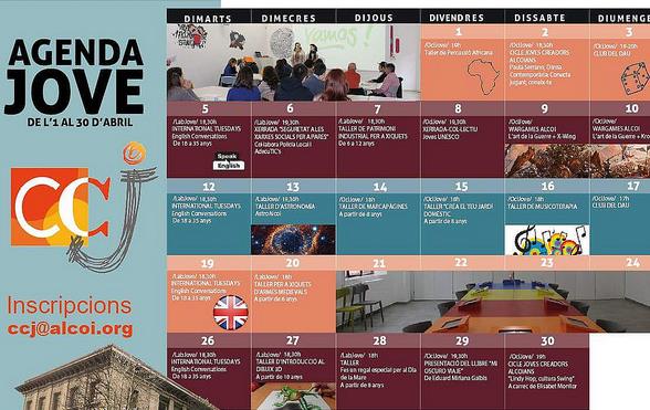 El mes d’abril arriba al CCJ amb moltes opcions d’oci per als joves alcoians i de la comarca. Més de 20 activitats de tot tipus per a joves de totes les edats, pares, i xiquets a partir de 6 anys, i totes elles gratuïtes.
