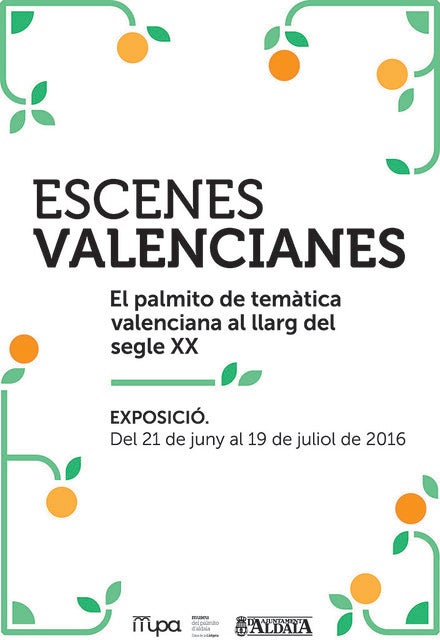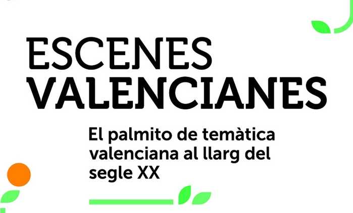 Els palmitos són aire pintat, autèntiques obres d’art on els pintors creen belles imatges al·legòriques. «Escenes valencianes» presenta una mostra de 40 ventalls amb ambients costumistes típics de l’Horta i la ciutat de València. Entre altres trobem estampes campestres amb llauradors i llauradores vestits amb la indumentària tradicional, ambients festívols de danses populars sinuoses envoltades d’una atmosfera romàntica mediterrània. O entorns rurals amb icones de la cultura valenciana tan conegudes com la Barraca, la taronja o la internacional paella. Igualment hi ha palmitos que reprodueixen paisatges culturals que fan referència al regadiu d’horta i l’Albufera amb les seues barques amb vela llatina i barraques típiques de pescadors, així com llegendes populars o personatges històrics que formen part de la mitologia popular, com el Rei Jaume I, o imatges religioses com el Crist dels Necessitats d’Aldaia, la Mare de Déu dels Desemparats o la Mare de Déu del Do d’Alfafar. I també bells quadres del patrimoni arquitectònic de València més emblemàtic com la Catedral i el seu Miquelet, les Torres de Serrans i de Quart o el Tribunal de les Aigües en palmitos cedits per Antonio Soldevila i Guillermo Carbonell.