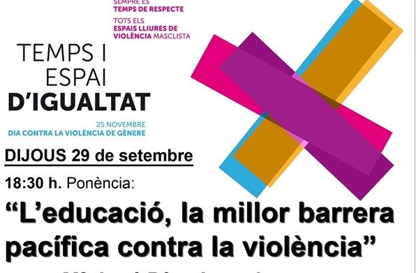 Temps i espai d’igualtat: ponència “L’educació, la millor barrera pacífica contra la violencia”