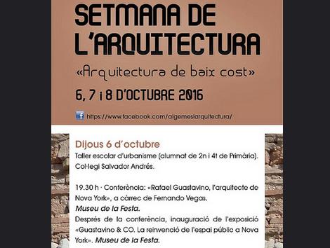 Algemesí presenta la primera Setmana de l’Arquitectura que se centra en l’arquitectura de baix cost. Les activitats es duran a terme del 6 al 8 d’octubre. El regidor de Medi Ambient i Urbanisme, Pau Montalvà, ha destacat que la setmana pretén ser un fòrum de reflexió i debat sobre el present i futur de l’arquitectura però aplicat a aspectes concrets que milloren la qualitat de vida dels algemesinenses.