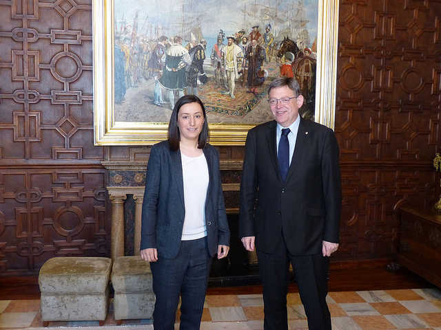 El president de la Generalitat Valenciana, Ximo Puig, ha rebut en audiència oficial a l’alcaldessa d’Algemesí, Marta Trenzano, en el Palau de la Generalitat. En el transcurs de la reunió, l’alcaldessa ha transmés a Puig les necessitats més urgents de la ciutat i en les que ja estan treballant els regidors amb les diverses conselleries.