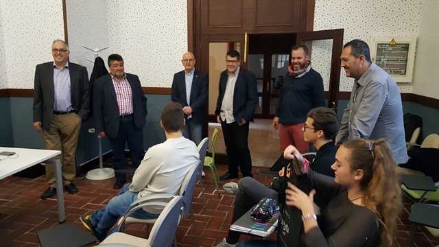 El regidor d’Educació Pepe Grau, juntament amb el regidor de Gestió Urbanística Fernando Pascual, acompanyats pel president de la Societat Musical d’Alzira, Camilo Mascarell, el director de l’escola de música, David González, i el mestre Alberto Sánchez, han visitat les aules ara que ja han finalitzat les obres de millora de l’acústica.