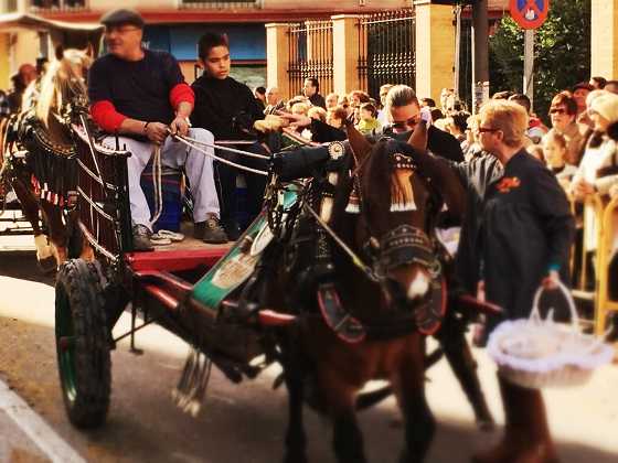 En primer lloc van ser les mascotes més xicotetes, i després van desfilar, per alguns dels carrers del municipi fins a arribar a la porta de l’església, cavalls i un gran nombre de carros de ciutadans de Sueca i d’altres poblacions pròximes.