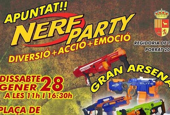 Apunta’t a la Nerf Party!!! Si tens entre 8 i 16 anys, pots apuntar-te a la Nerf-Party que se celebrarà el dissabte 28 de gener. Apunta el teu equip a la biblioteca. Ací tens les bases i full d’inscripció