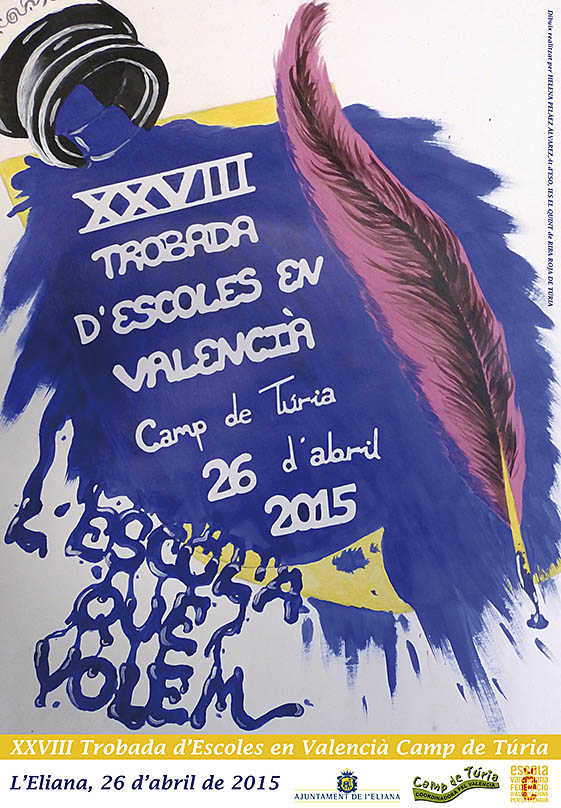 I per fi, el diumenge 26 d’abril, dia gran de la Trobada, a les 10:30 hores tindrà lloc una cercavila amb les escoles participants des de l’Avinguda del Poliesportiu i pels carrers de l’Eliana amb l’acompanyament de tabals i dolçaines de la Unió Musical de l’Eliana, la parella de Gegants de l’Eliana i la colla de dolçainers de l’Ateneu cultural de Benaguasil. La festa continuarà a la Plaça d’Europa del Parc de Pinada, on els assistents podran gaudir al llarg del matí de més de 50 tallers i propostes d’activitats i venda organitzades pels centres educatius i les entitats culturals i empreses col·laboradores.