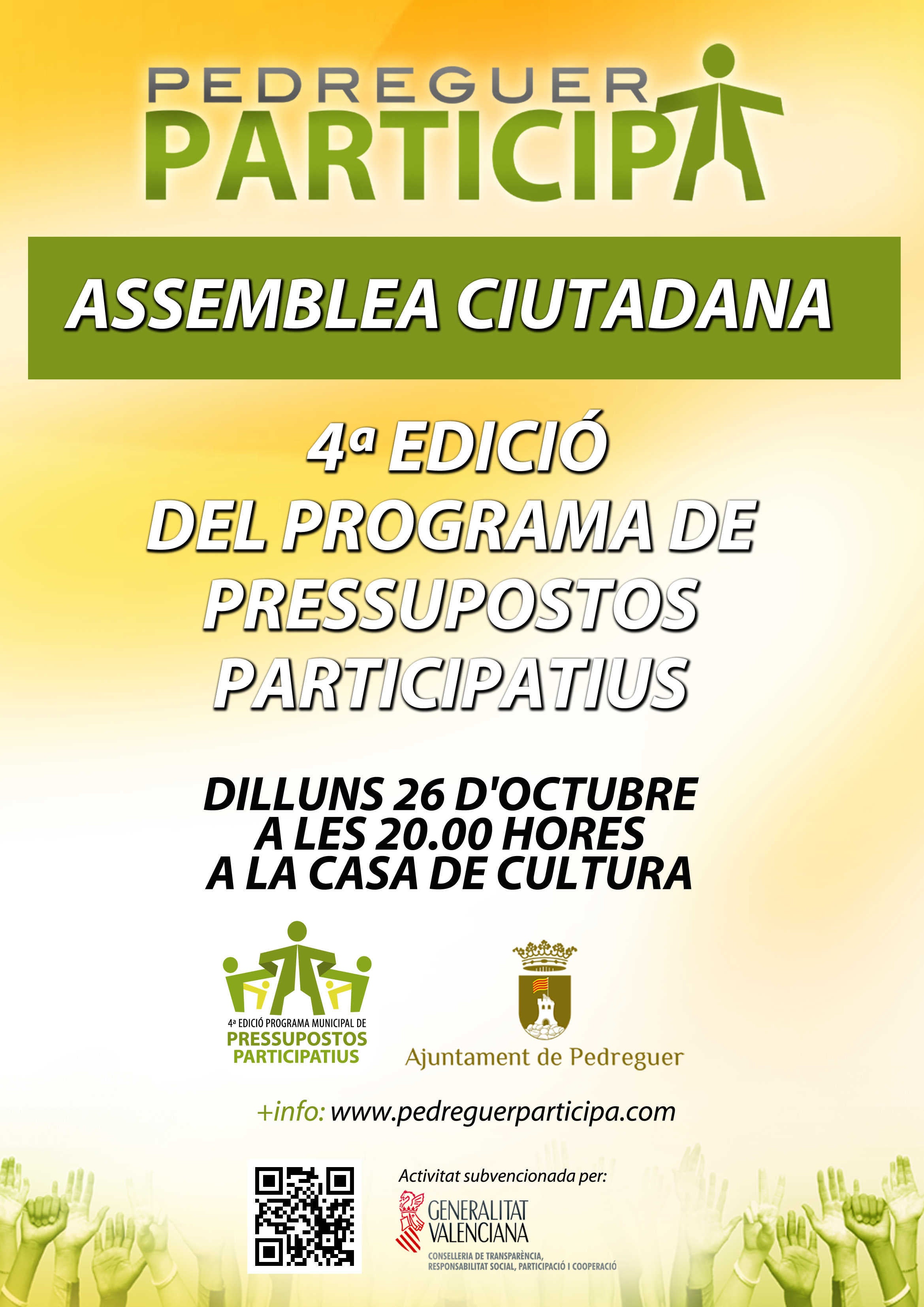 Així, el proper dilluns 26 d’octubre, a les 20 h i a la Casa de la Cultura, tindrà lloc l’assemblea ciutadana de preselecció de les propostes que seran sotmeses a votació durant les setmanes següents.
