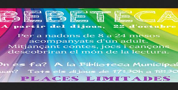 Per a nadons de 8 a 24 mesos acompanyades d’un adult. Mitjançant contes, jocs i cançons descobrirán el món de la lectura. Places limitades. Biblioteca municipal. Tots els dijous de 17.30a 18.30h. Inscripcions 96 276 02 33