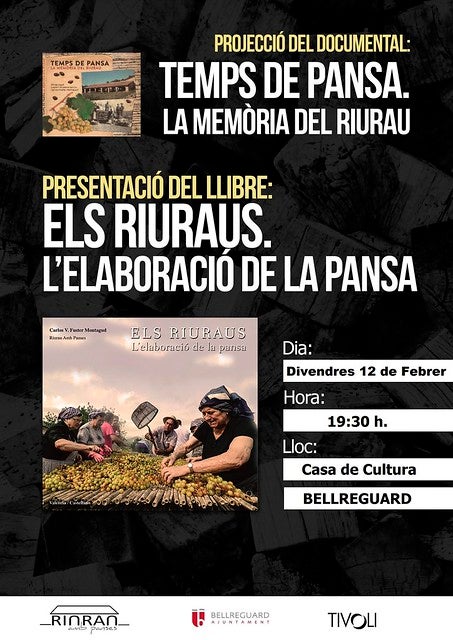 L’historiador Carlos Fuster presentarà divendres a Bellreguard el documental Temps de Pansa. La memòria del Riurau, així com el llibre Els riuraus. L’elaboració de la pansa (Ed. Tívoli) a les 19:30 hores, en la Casa de Cultura de Bellreguard. Joan Antoni Torres, investigador incansable de la història local que ha col·laborat amb Fuster en l’elaboració del llibre, serà l’encarregat de presentar l’acte.