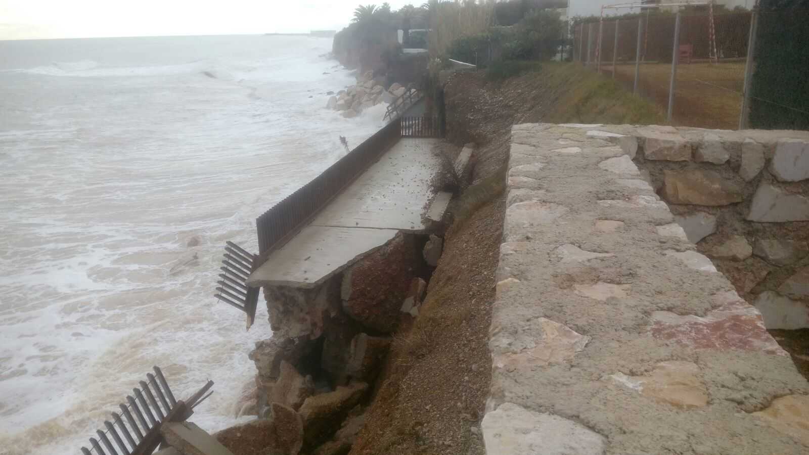 La principal conseqüència del temporal a Benicarló ha estat la pràctica desaparició de la passarel·la de fusta de la costa Nord, una obra executada pel Ministeri el 2014 i valorada en 200.000 euros, que segons han reconegut els serveis tècnics de l’Ajuntament, ‘ha quedat completament inutilitzada’.