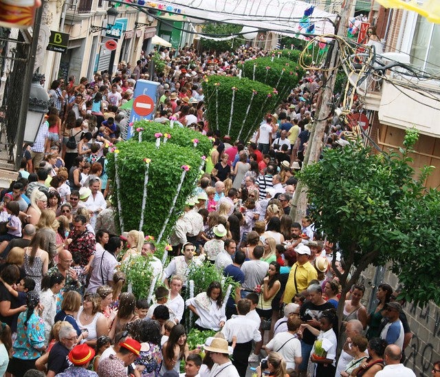 Este dissabte 15 d’agost ha arribat el dia gran per als beterans i beteranes: l’Ofrena a la Mare de Déu d’Agost. Uns deu mil quilos de confeti han omplit de color els carrers de Bétera amb l’aroma de les 16 Alfàbegues que han desfilat pel municipi del Camp de Túria, des de l’Hort de Manolo ‘el Morquero’ fins arribar a l’església de la Puríssima.
